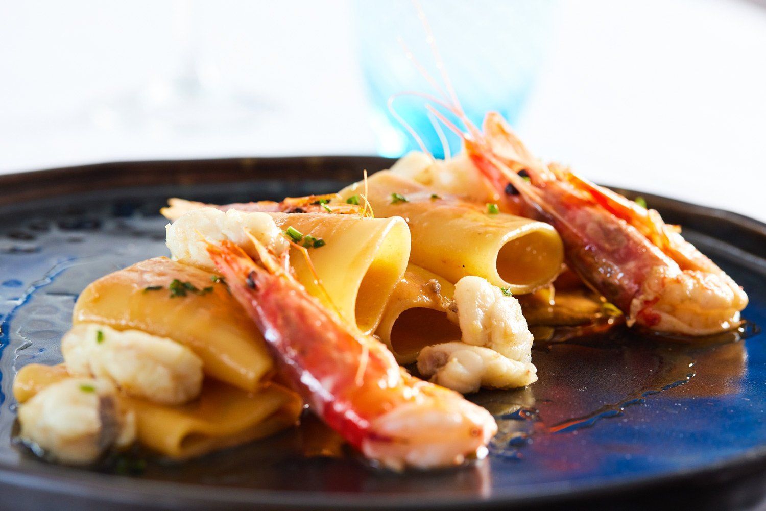 - Pasta con frutti di mare, scampi, vongole e gamberoni